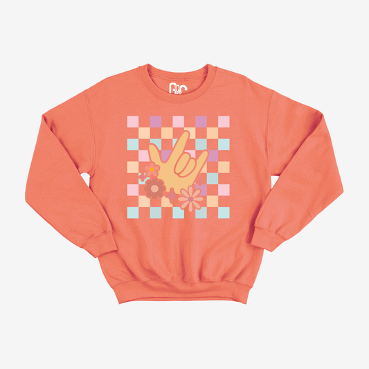 Peach Checkered & ILY Crewneck