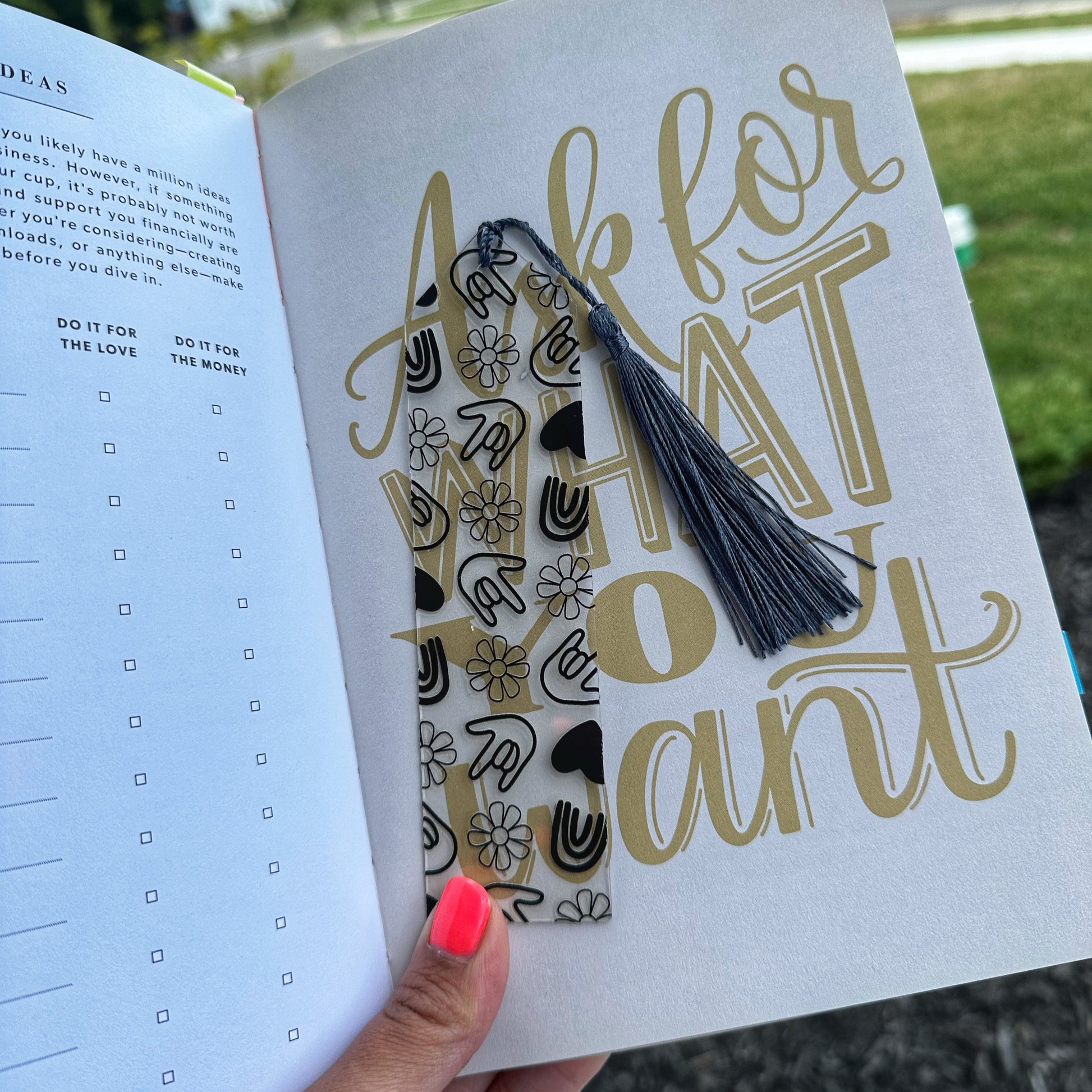 Enhance your reading experience with our Book & ILY Acrylic bookmark! Made with durable acrylic, this bookmark will ensure your place is never lost. Perfect for book lovers and avid readers, it's the ideal companion for every reading adventure!